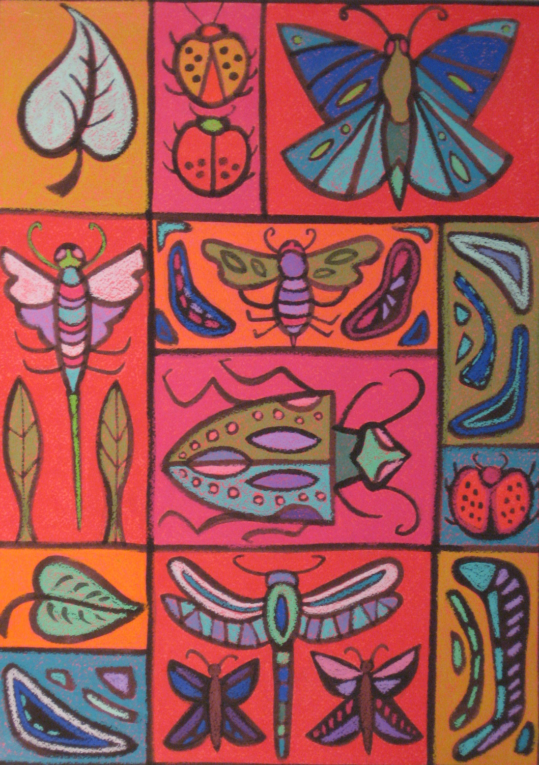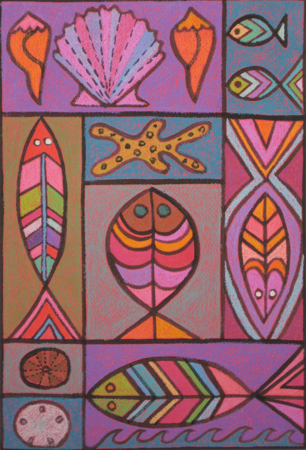My eco paintings incorporate flora and fauna from the mountains and the sea.