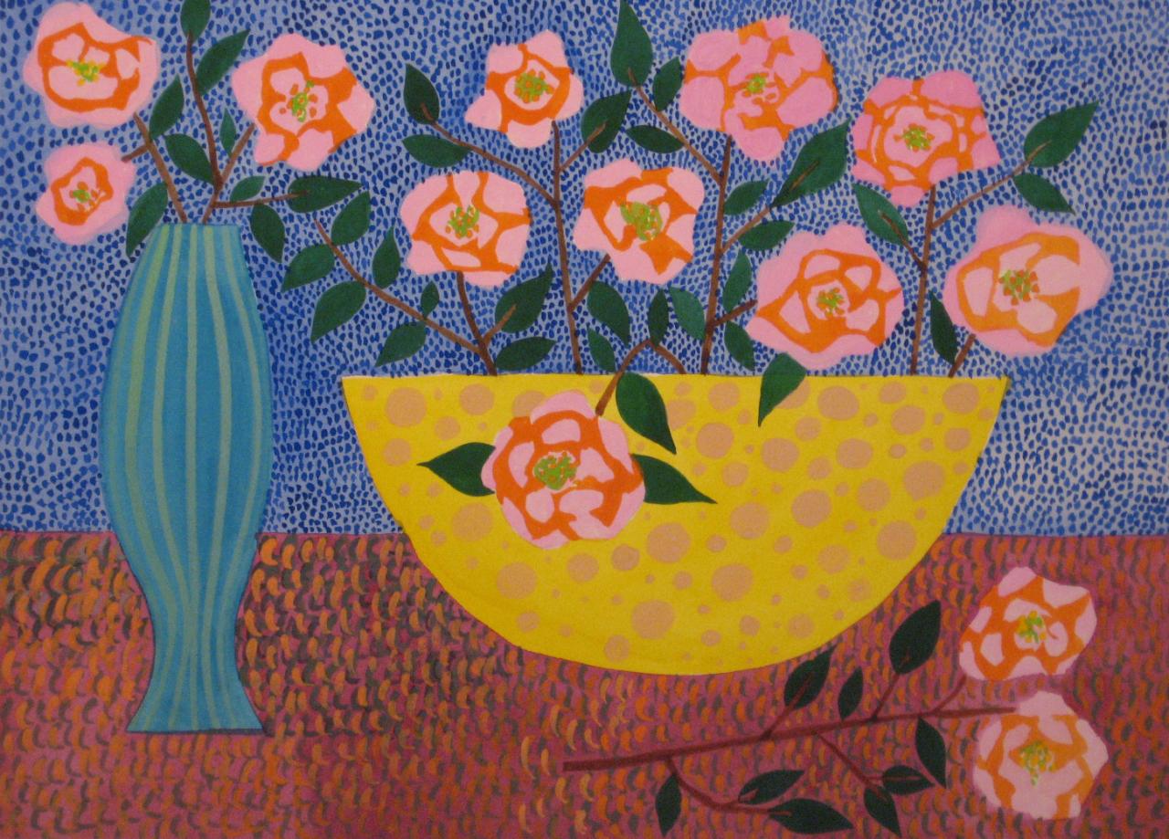 These paintings are a contemporary interpretation of primitive American still lifes.